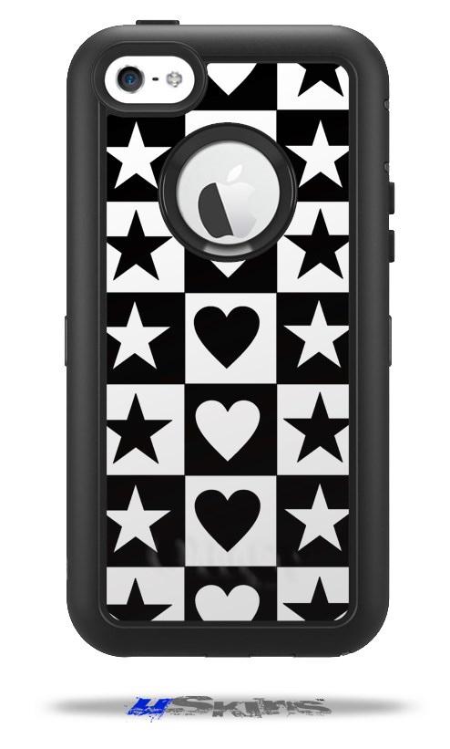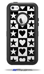 Hearts And Stars Black and White - Decal Style Vinyl Skin fits Otterbox Defender iPhone 5C Case (CASE SOLD SEPARATELY)