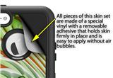 uSkins™ are self adhering vinyl decal style skins and are a great way to add a new look to your existing protective case. uSkins are a composite of two layers of commercial grade materials. The bottom layer is a soft, flexible vinyl with a special removable adhesive that is easily positioned, applied without air bubbles. Next we print the bottom layer with UV protected, fade resistant inks that deliver superb photo quality designs in vibrant colors. Finally we bond a professional grade laminate over the entire skin adding a glossy protective finish.