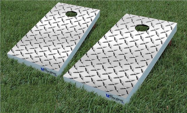 Cornhole Game Board Vinyl Skin Wrap Kit - Diamond Plate Metal fits 24x48 game boards (GAMEBOARDS NOT INCLUDED)