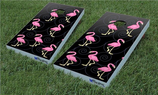 Cornhole Game Board Vinyl Skin Wrap Kit - Flamingos on Black fits 24x48 game boards (GAMEBOARDS NOT INCLUDED)