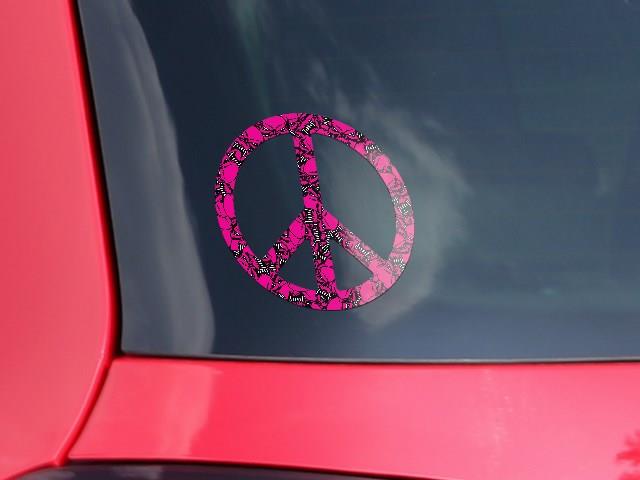 Scattered Skulls Hot Pink - Peace Sign Car Window Decal 6 x 6 inches