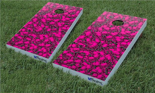 Cornhole Game Board Vinyl Skin Wrap Kit - Scattered Skulls Hot Pink fits 24x48 game boards (GAMEBOARDS NOT INCLUDED)