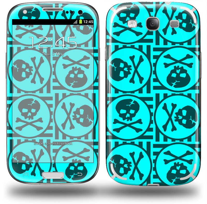 Skull Patch Pattern Blue - Decal Style Skin (fits Samsung Galaxy S III S3)