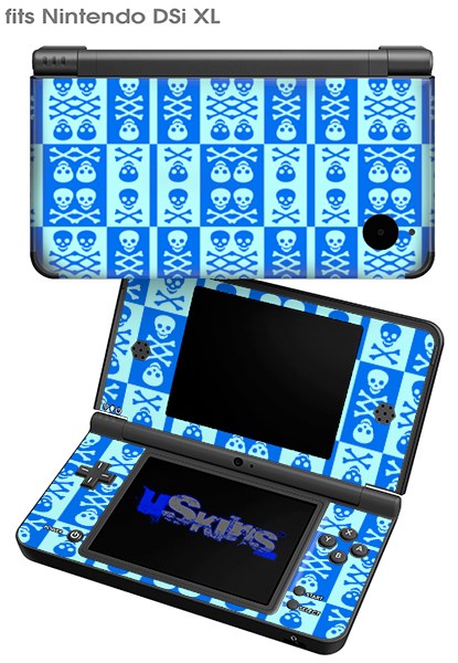 Skull And Crossbones Pattern Blue - Decal Style Skin fits Nintendo DSi XL (DSi SOLD SEPARATELY)