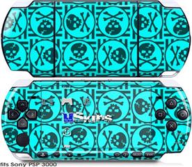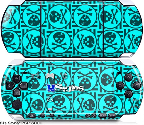 Sony PSP 3000 Skin - Skull Patch Pattern Blue