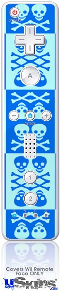 Wii Remote Controller Face ONLY Skin - Skull And Crossbones Pattern Blue
