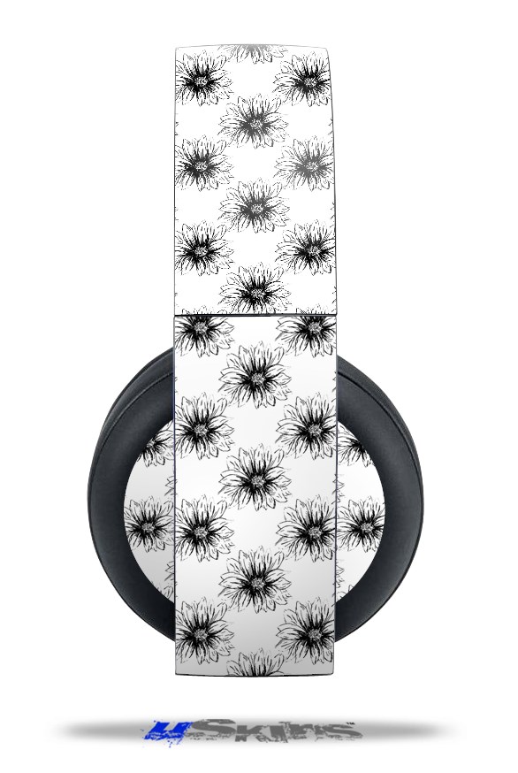 Vinyl Decal Skin Wrap compatible with Original Sony PlayStation 4 Gold Wireless Headphones Kearas Daisies Black on White (PS4 HEADPHONES NOT INCLUDED)