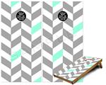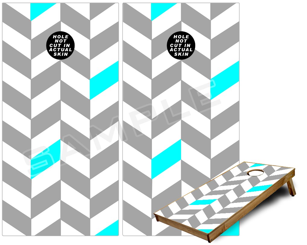 Cornhole Game Board Vinyl Skin Wrap Kit - Chevrons Gray And Aqua fits 24x48 game boards (GAMEBOARDS NOT INCLUDED)