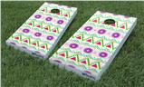 WraptorSkinz corn hole wraps stick to Painted surfaces and even Raw Wood! Automotive vinyl does not cut it on bag toss game boards. We use professional grade, 7 year vinyl with specially formulated adhesive that can be applied directly to raw wood boards. Then we print with the UV protected inks for bright, vivid colors that resist sun fading.