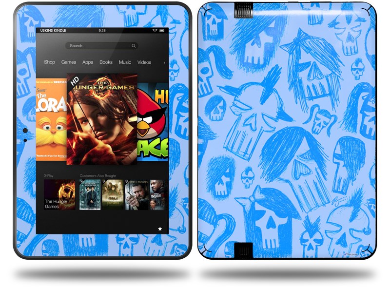 Skull Sketches Blue Decal Style Skin fits Amazon Kindle Fire HD 8.9 inch