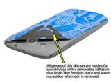 uSkins™ are self adhering vinyl skins that help prevent scratches and look great doing it. Unlike bulky silicon, plastic or metal cases and faceplates, uSkins are designed to be thin and very tough. uSkins are a composite of two layers of commercial grade materials. The bottom layer is a soft, flexible vinyl with a special removable adhesive that is easily positioned, applied without air bubbles, and effortlessly removed without leaving a sticky residue. Next we print the bottom layer with UV protected, fade resistant inks that deliver superb photo quality designs in vibrant colors. Finally we bond a professional grade laminate over the entire skin adding a glossy protective finish.