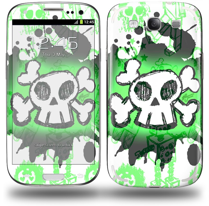 Cartoon Skull Green - Decal Style Skin (fits Samsung Galaxy S III S3)