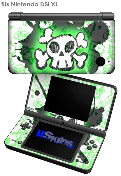 Cartoon Skull Green - Decal Style Skin fits Nintendo DSi XL (DSi SOLD SEPARATELY)