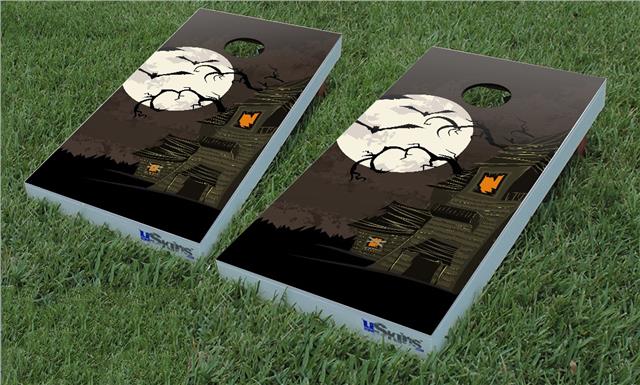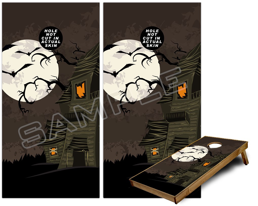 Cornhole Game Board Vinyl Skin Wrap Kit - Halloween Haunted House fits 24x48 game boards (GAMEBOARDS NOT INCLUDED)