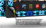 uSkins™ are self adhering vinyl skins that help prevent scratches and look great doing it. Unlike bulky silicon and plastic covers, uSkins are designed to be thin and very tough. uSkins are a composite of two layers of commercial grade materials. The bottom layer is a soft, flexible vinyl with a special removable adhesive that is easily positioned and applied without air bubbles. The bottom layer print with special UV protected, fade resistant inks that deliver superb photo quality designs in vibrant colors. Finally we bond a professional grade laminate over the entire skin adding a glossy protective finish.