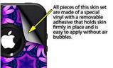 uSkins™ are self adhering vinyl decal style skins and are a great way to add a new look to your protective case. uSkins are a composite of two layers of commercial grade materials. The bottom layer is a soft, flexible vinyl with a special removable adhesive that is easily positioned, applied without air bubbles. Next we print the bottom layer with UV protected, fade resistant inks that deliver superb photo quality designs in vibrant colors. Finally we bond a professional grade laminate over the entire skin adding a glossy protective finish.