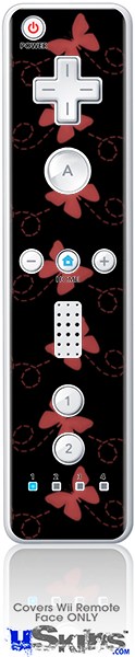 Wii Remote Controller Face ONLY Skin - Pastel Butterflies Red on Black