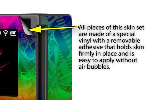 WraptoSkinz™ skins are superb photo quality designs and vibrant colors printed with special Eco-Friendly, fade resistant inks. Our skins are self-adhering flexible vinyl skins that helps prevent scratches. Made of composite, multi-layered commercial grade materials. The bottom layer is made with a special removable adhesive that is easily positioned and applied without air bubbles. We print your design on the bottom layer then bond a professional grade laminate over the entire skin adding a glossy protective finish.