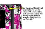 WraptoSkinz™ skins are superb photo quality designs and vibrant colors printed with special Eco-Friendly, fade resistant inks. Our skins are self-adhering flexible vinyl skins that helps prevent scratches. Made of composite, multi-layered commercial grade materials. The bottom layer is made with a special removable adhesive that is easily positioned and applied without air bubbles. We print your design on the bottom layer then bond a professional grade laminate over the entire skin adding a glossy protective finish.
