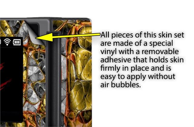 WraptoSkinz™ skins are superb photo quality designs and vibrant colors printed with special Eco-Friendly, fade resistant inks. Our skins are self-adhering flexible vinyl skins that helps prevent scratches. Made of composite, multi-layered commercial grade materials. The bottom layer is made with a special removable adhesive that is easily positioned and applied without air bubbles. We print your design on the bottom layer then bond a professional grade laminate over the entire skin adding a glossy protective finish.