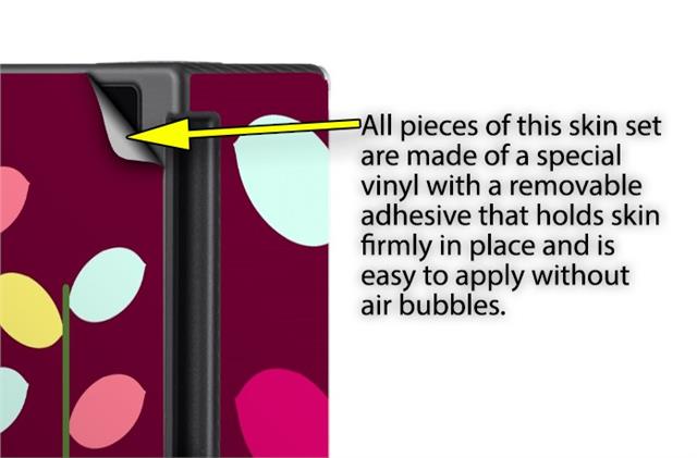 WraptoSkinz™ skins are superb photo quality designs and vibrant colors printed with special Eco-Friendly, fade resistant inks. Our skins are self-adhering flexible vinyl skins that helps prevent scratches. Made of composite, multi-layered commercial grade materials. The bottom layer is made with a special removable adhesive that is easily positioned and applied without air bubbles. We print your design on the bottom layer then bond a professional grade laminate over the entire skin adding a glossy protective finish.