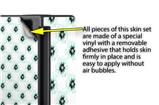 WraptoSkinz™ skins are superb photo quality designs and vibrant colors printed with special Eco-Friendly, fade resistant inks. Our skins are self-adhering flexible vinyl skins that helps prevent scratches. Made of composite, multi-layered commercial grade materials. The bottom layer is made with a special removable adhesive that is easily positioned and applied without air bubbles. We print your design on the bottom layer then bond a professional grade laminate over the entire skin adding a glossy protective finish.