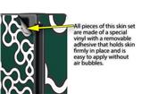 WraptoSkinz™ skins are superb photo quality designs and vibrant colors printed with special Eco-Friendly, fade resistant inks. Our skins are self-adhering flexible vinyl skins that helps prevent scratches. Made of composite, multi-layered commercial grade materials. The bottom layer is made with a special removable adhesive that is easily positioned and applied without air bubbles. We print your design on the bottom layer then bond a professional grade laminate over the entire skin adding a glossy protective finish.