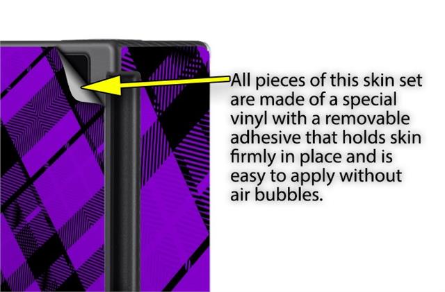 WraptoSkinz™ skins are superb photo quality designs and vibrant colors printed with special Eco-Friendly, fade resistant inks. Our skins are self-adhering flexible vinyl skins that helps prevent scratches. Made of composite, multi-layered commercial grade materials. The bottom layer is made with a special removable adhesive that is easily positioned and applied without air bubbles. We print your design on the bottom layer then bond a professional grade laminate over the entire skin adding a glossy protective finish.