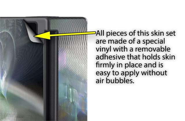 WraptoSkinz™ skins are superb photo quality designs and vibrant colors printed with special Eco-Friendly, fade resistant inks. Our skins are self-adhering flexible vinyl skins that helps prevent scratches. Made of composite, multi-layered commercial grade materials. The bottom layer is made with a special removable adhesive that is easily positioned and applied without air bubbles. We print your design on the bottom layer then bond a professional grade laminate over the entire skin adding a glossy protective finish.