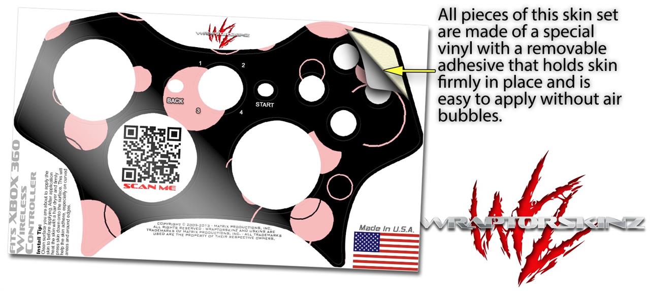 XBOX 360 Wireless Controller Decal Style Skin - Lots of Dots Pink on Black (CONTROLLER NOT INCLUDED)