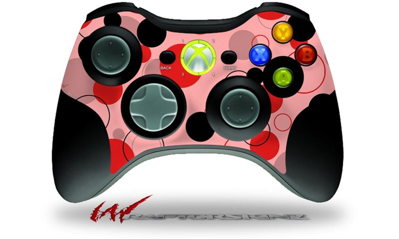 XBOX 360 Wireless Controller Decal Style Skin - Lots of Dots Red on Pink (CONTROLLER NOT INCLUDED)
