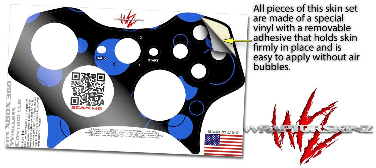 XBOX 360 Wireless Controller Decal Style Skin - Lots of Dots Blue on Black (CONTROLLER NOT INCLUDED)