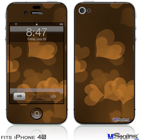 iPhone 4S Decal Style Vinyl Skin - Bokeh Hearts Orange