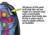 uSkins™ are self adhering vinyl skins that help prevent scratches and look great doing it. Unlike bulky silicon and plastic covers, uSkins are designed to be thin and very tough. uSkins are a composite of two layers of commercial grade materials. The bottom layer is a soft, flexible vinyl with a special removable adhesive that is easily positioned and applied without air bubbles. The bottom layer print with special UV protected, fade resistant inks that deliver superb photo quality designs in vibrant colors. Finally we bond a professional grade laminate over the entire skin adding a glossy protective finish.