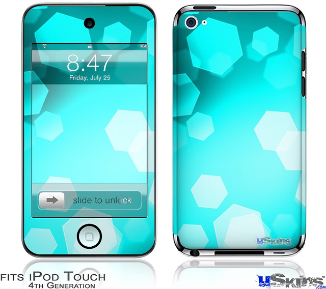 iPod Touch 4G Decal Style Vinyl Skin - Bokeh Hex Neon Teal