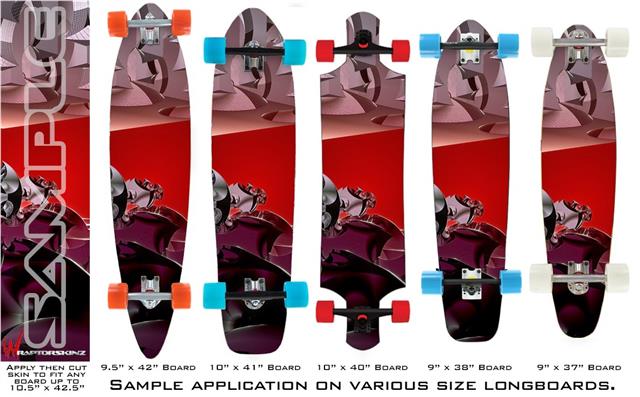 Our longboard skins are made so that one size fits boards up to 10” wide x 42” long. This means after applying the skin it you will trimming to fit you’re the shape of your board with a sharp utility knife.