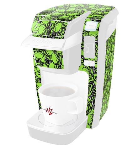 Decal Style Vinyl Skin compatible with Keurig K10 / K15 Mini Plus Coffee Makers Scattered Skulls Neon Green (KEURIG NOT INCLUDED)