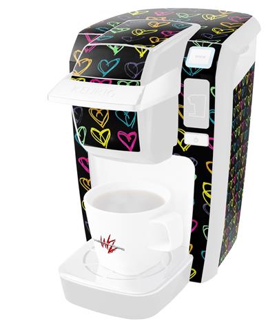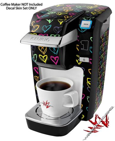 Decal Style Vinyl Skin compatible with Keurig K10 / K15 Mini Plus Coffee Makers Kearas Hearts Black (KEURIG NOT INCLUDED)