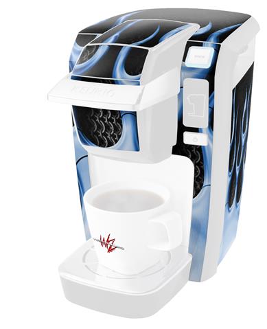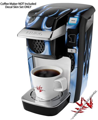 Decal Style Vinyl Skin compatible with Keurig K10 / K15 Mini Plus Coffee Makers Metal Flames Blue (KEURIG NOT INCLUDED)
