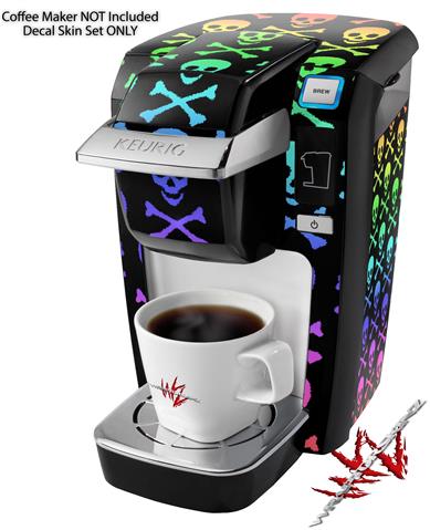 Decal Style Vinyl Skin compatible with Keurig K10 / K15 Mini Plus Coffee Makers Skull and Crossbones Rainbow (KEURIG NOT INCLUDED)