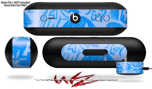 Decal Style Wrap Skin fits Beats Pill Plus Skull Sketches Blue (BEATS PILL NOT INCLUDED)