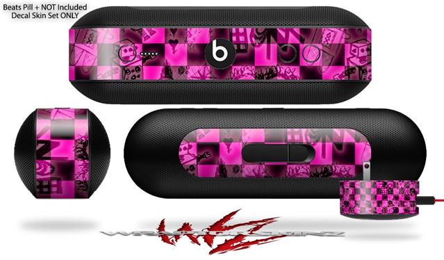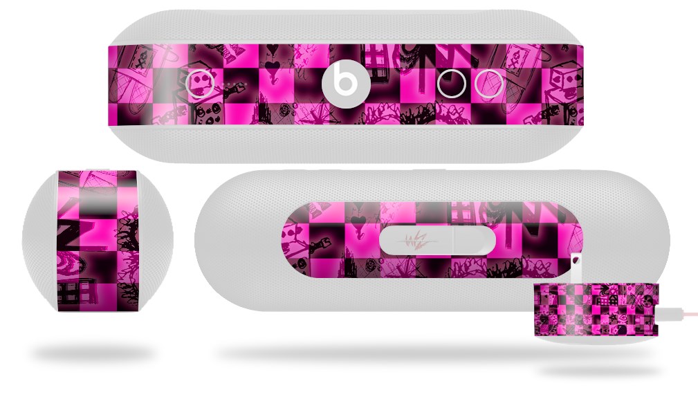 Decal Style Wrap Skin fits Beats Pill Plus Pink Checkerboard Sketches (BEATS PILL NOT INCLUDED)