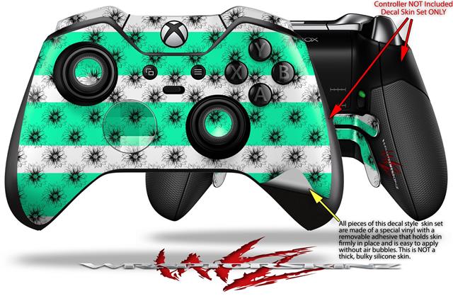 Kearas Daisies Stripe Sea Foam - Decal Style Skin fits Microsoft XBOX One ELITE Wireless Controller