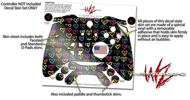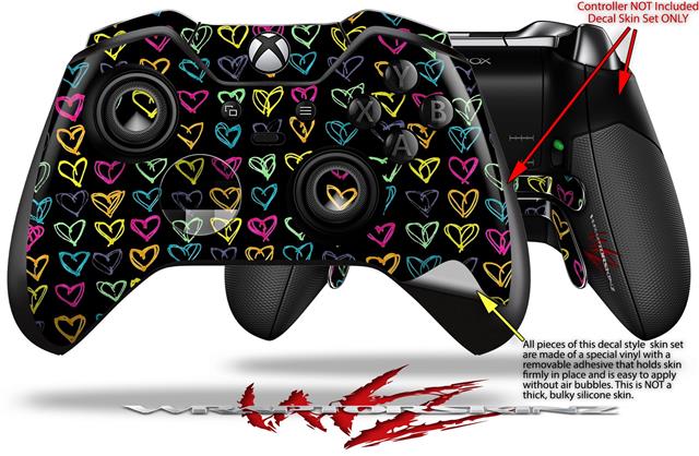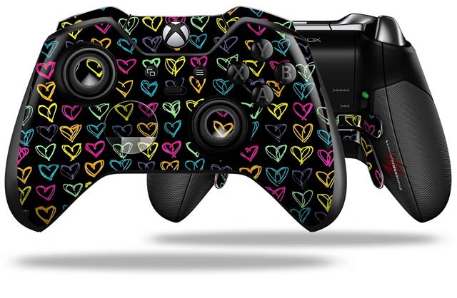 Kearas Hearts Black - Decal Style Skin fits Microsoft XBOX One ELITE Wireless Controller