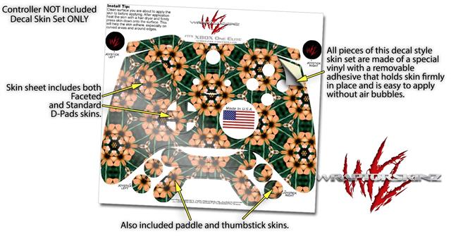 Floral Pattern Orange - Decal Style Skin fits Microsoft XBOX One ELITE Wireless Controller