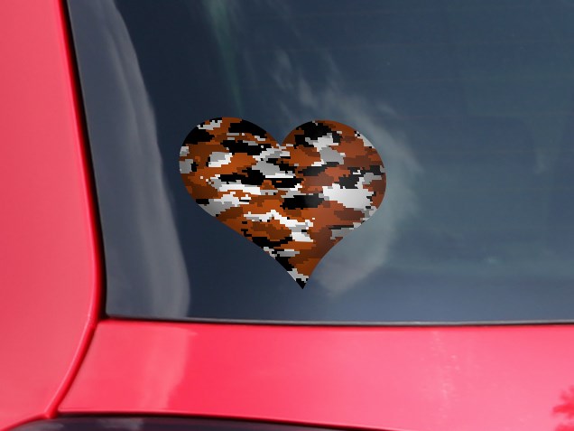 WraptorCamo Digital Camo Burnt Orange - I Heart Love Car Window Decal 6.5 x 5.5 inches