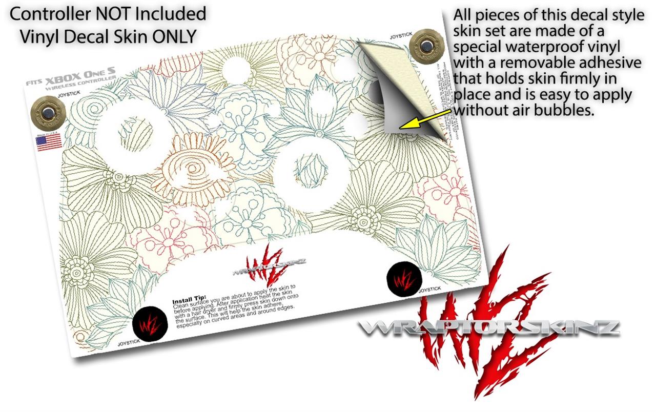 WraptorSkinz Decal Skin Wrap Set works with 2016 and newer XBOX One S / X Controller Flowers Pattern 02 (CONTROLLER NOT INCLUDED)