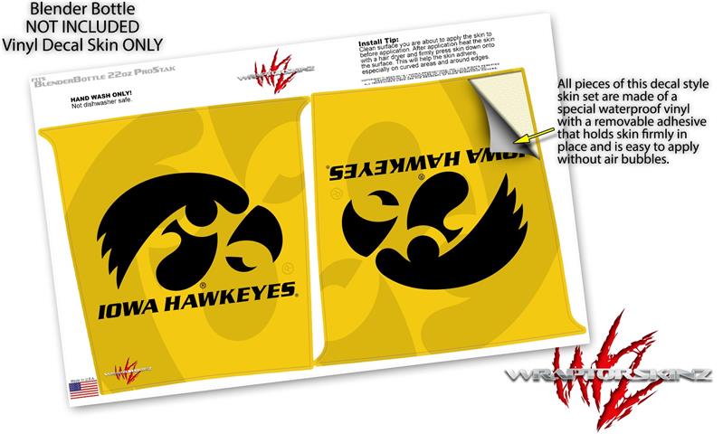 Decal Style Skin Wrap works with Blender Bottle 22oz ProStak Iowa Hawkeyes Herkey Black on Gold (BOTTLE NOT INCLUDED)