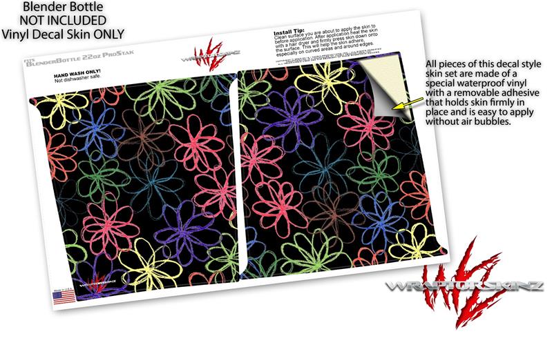 Decal Style Skin Wrap works with Blender Bottle 22oz ProStak Kearas Flowers on Black (BOTTLE NOT INCLUDED)