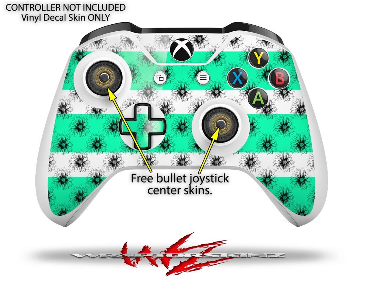 WraptorSkinz Decal Skin Wrap Set works with 2016 and newer XBOX One S Console and 2 Controllers Kearas Daisies Stripe SeaFoam